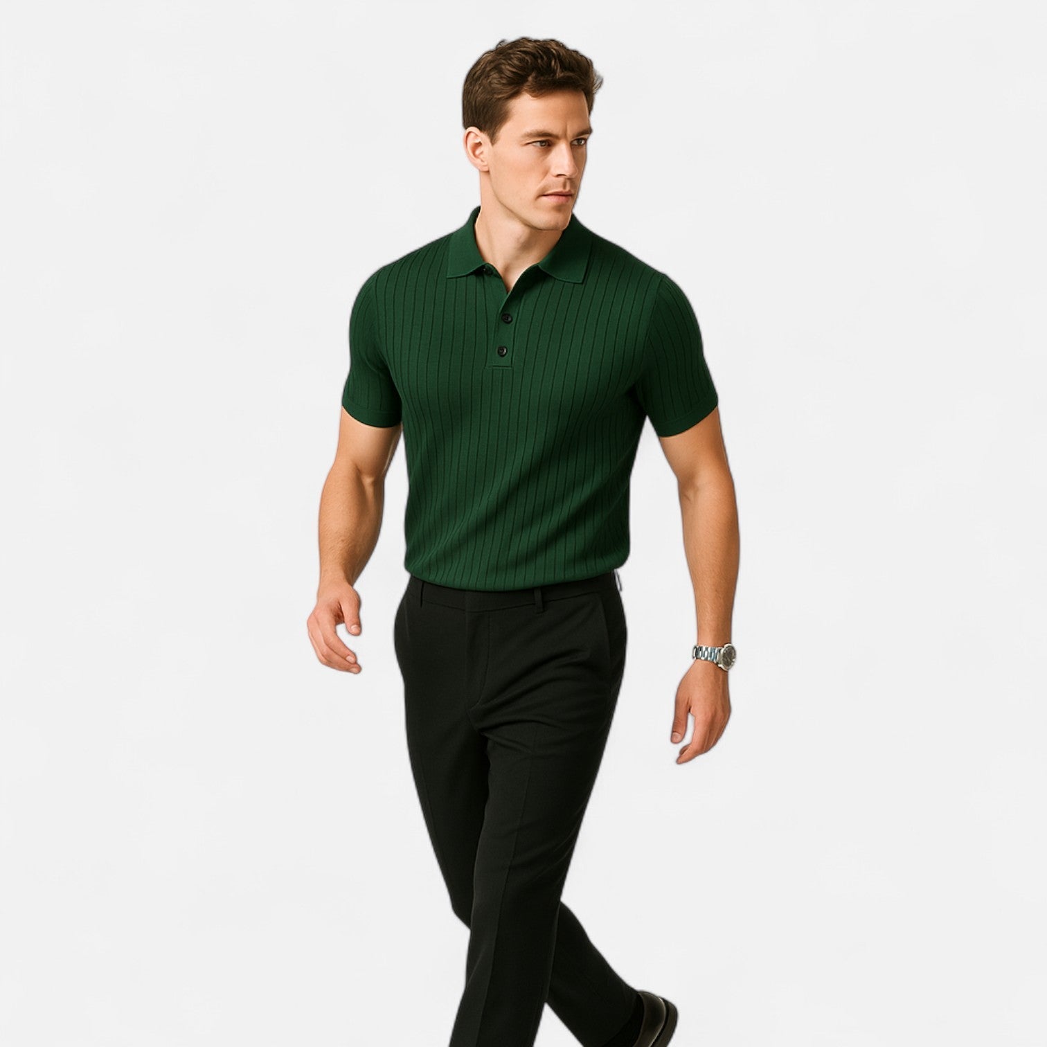 Das SwissFellas Herren Retro Strick Poloshirt mit Streifen fängt den Geist des Mod-Erbes mit moderner Qualität ein. Fachmännische Strickkonstruktion, Heritage-Muster und atmungsaktiver Komfort vereinen sich zu einem Stück, das sowohl nostalgisch als auch frisch relevant ist – perfekt für den anspruchsvollen Herren, der zeitlosen Stil und taktile Eleganz schätzt.